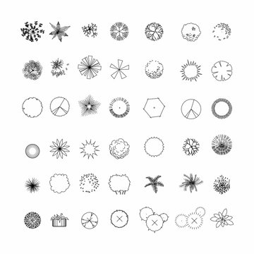 Top View And Side View Set Of Graphics Trees Elements Outline Symbol For Architecture And Landscape Design Drawing Vector Illustration Stock Photos